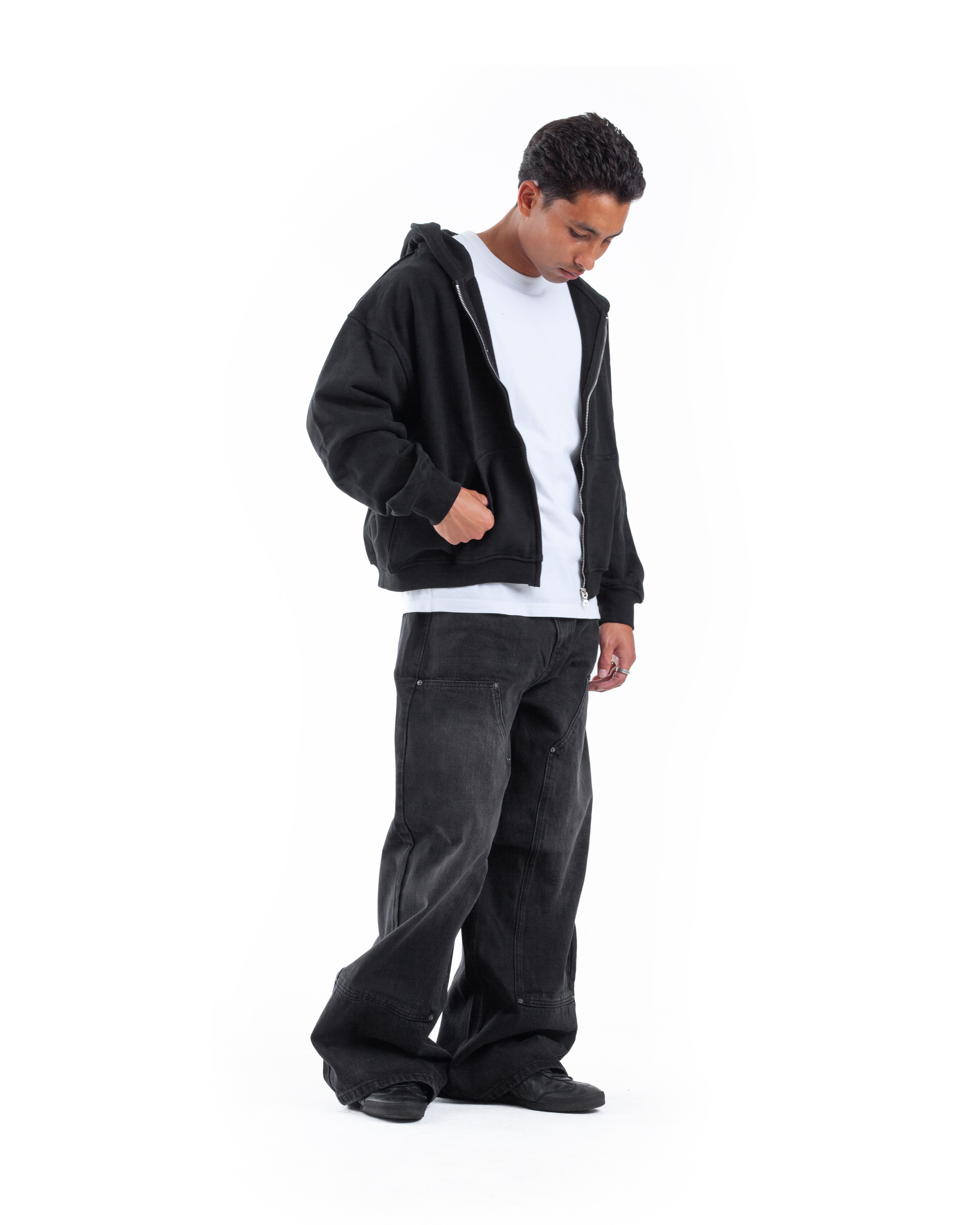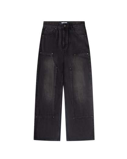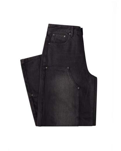 Our Black Double Knee Denim is made from top-notch 14 oz denim that provides both durability and comfort. Constructed entirely of 100% cotton, this classic piece comes with a unique leather tag and buttons, adding a touch of personal flair to any outfit.