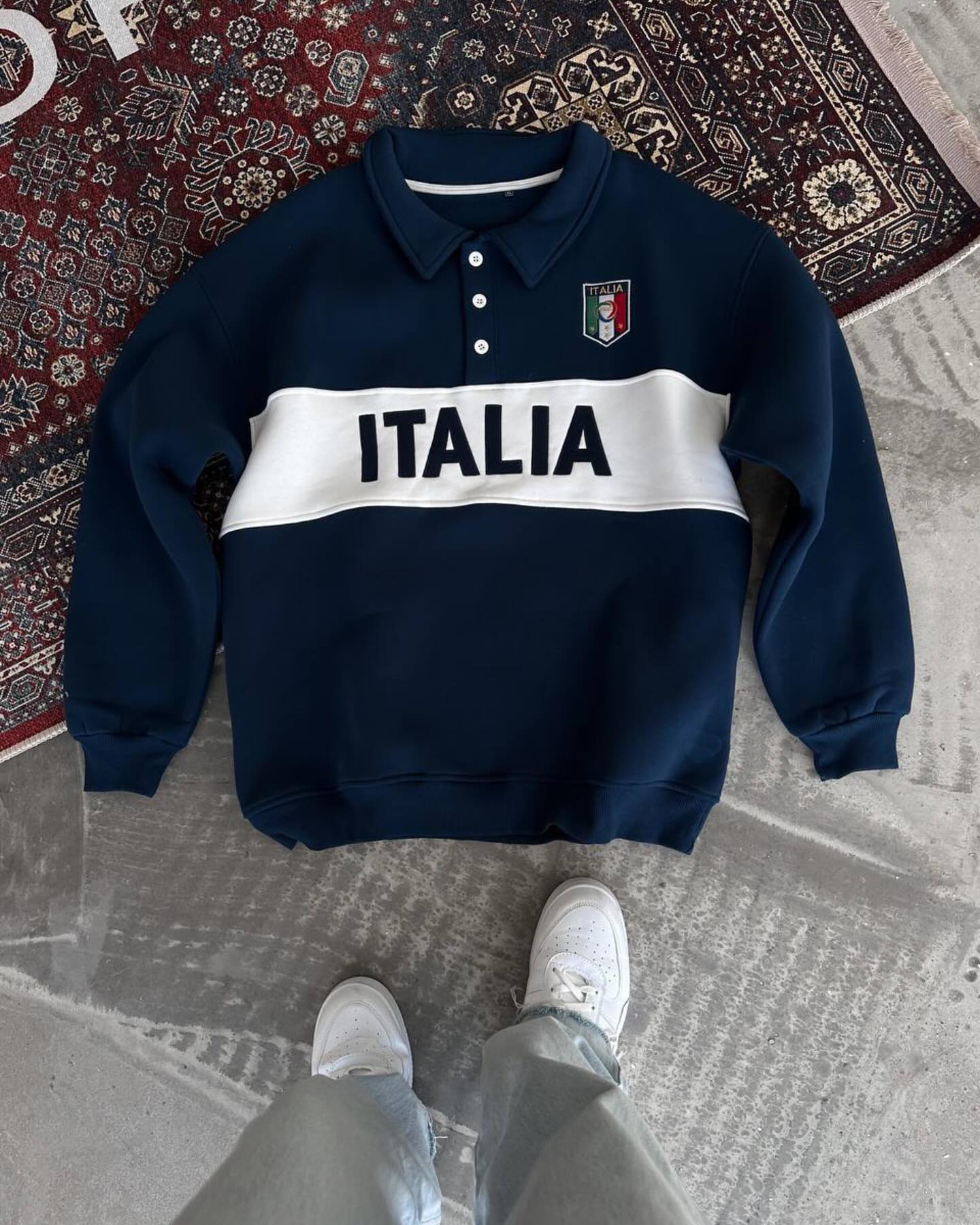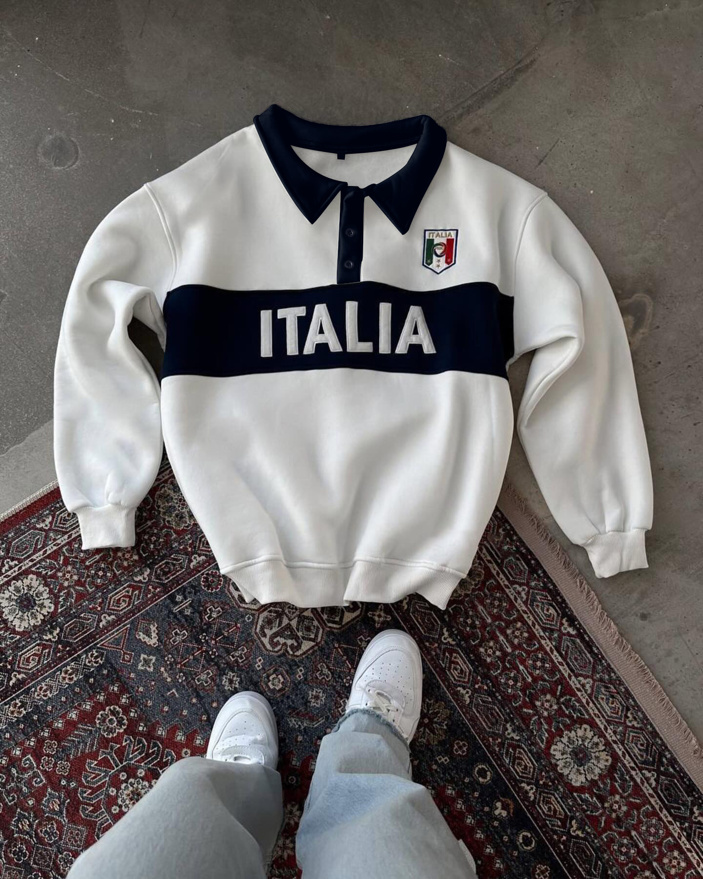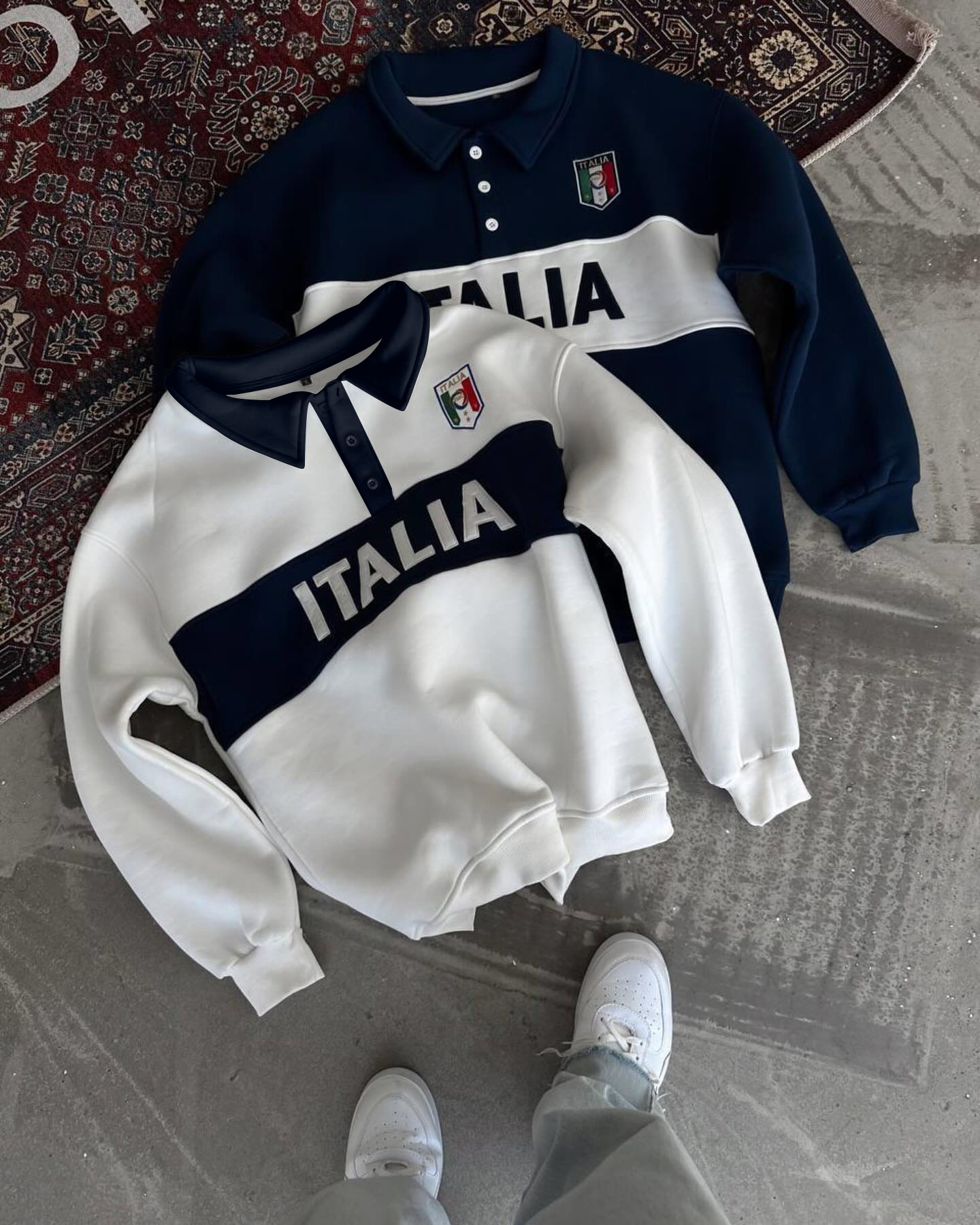 Color-block Polo-Collar Sweatshirt (Jersey Style)